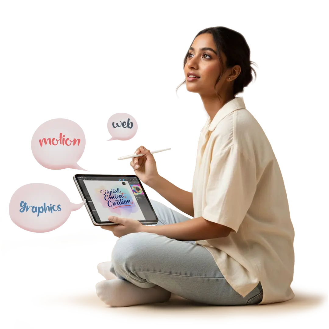 DCC is one of the only training paths that unifies Graphic Design, Motion Graphics and UI/UX into a single industry-ready programme — because studios and agencies don’t want one-tool specialists. They want designers who can think and deliver across the full creative pipeline.
